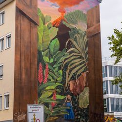 Datierung: 2024 Material/Technik: Fassadenmalerei Kategorie: Walls of Vision Stadtteil: Zentrum Standort: Kölnstraße 32 Auftraggeber/Stifter: Dr. Hans Riegel-Stiftung