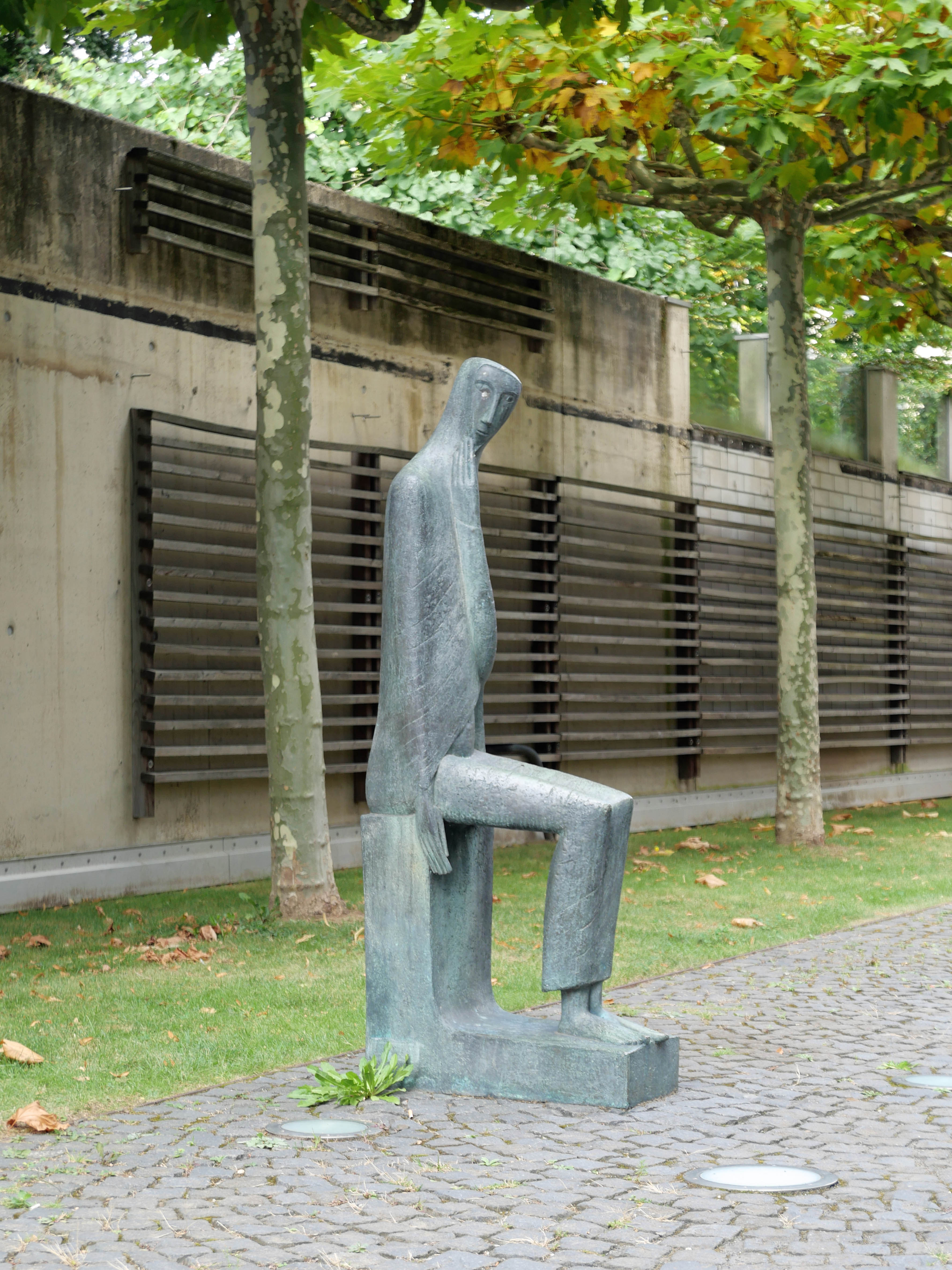 »Die schlanke Tripolitanerin sitzt hoch aufgerichtet auf einem L-förmigen Block, mit dem sie zu verschmelzen scheint. Körper und Gesicht sind nahezu von einem mantelartigen Gewand verhüllt. Bewegung entsteht nur durch eine leichte Wendung des Kopfes nach rechts und den angewinkelten linken Arm, mit dem sie das Gewand hält. Die stilisierte Figur mit den reduzierten Gesichtszügen gehört zum Spätwerk der Künstlerin, das von einer Reise nach Tripoli 1959 beeinflusst ist. Die dortigen Bewohnerinnen regten die Bildhauerin zu diesem Frauentypus an, der durch die silhouettenhafte Umrisslinie an ägyptische Kunst erinnert.«