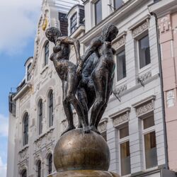 Das Wasser ergießt sich aus dem Inneren der Säule kommend über eine gerundete Überlaufkante, was die Kugel wie von diesem Element getragen wirken lässt, und fällt wie ein Schleier in die ornamentierte Schale. Diese wurde übernommen von dem alten Brunnen mit dem „Heringsmädchen“. Er war seit 1875 bis zum Bau der Fußgängerunterführung 1936 auf dem Kaiserplatz zu finden. Die Figur ging verloren, aber die Schale wurde 1974 auf dem Bauhof wieder entdeckt und gab den Anlass für die Beauftragung des Bildhauers.«