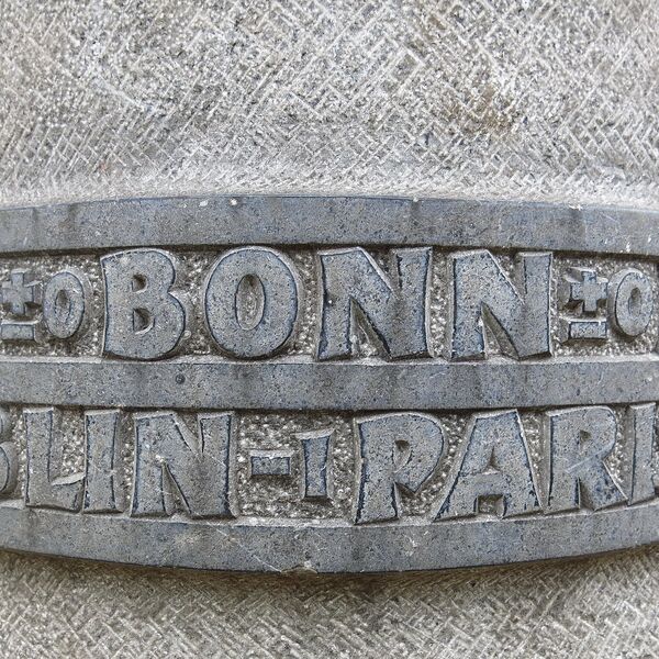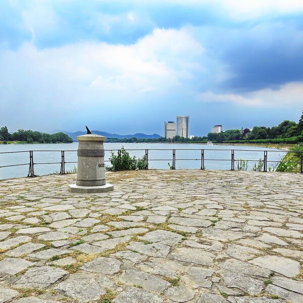 »Ein flacher achteckiger Sockel bildet die Basis für eine Säule mit der Sonnenuhr in Form einer Windrose als Abschluss. Auf ihr sind um den nach Norden gerichteten Zeiger die Himmelsrichtungen abzulesen sowie auf den äußeren Ringen die in Stunden und Halbstunden eingeteilte Mitteleuropäische Zeit (MEZ) und die Sommerzeit. Zu einer „Europauhr“ wird diese durch die Buchstaben UCCE (Union des Capitales de Communauté Européenne) auf der Säule, umgeben von zwölf Sternen, Verweise auf die Union der EG-Hauptstädte. Das zweigliedrige Band darüber trägt die Namen dieser Hauptstädte und gibt die Zeitdifferenz an - auf Bonn bezogen.«