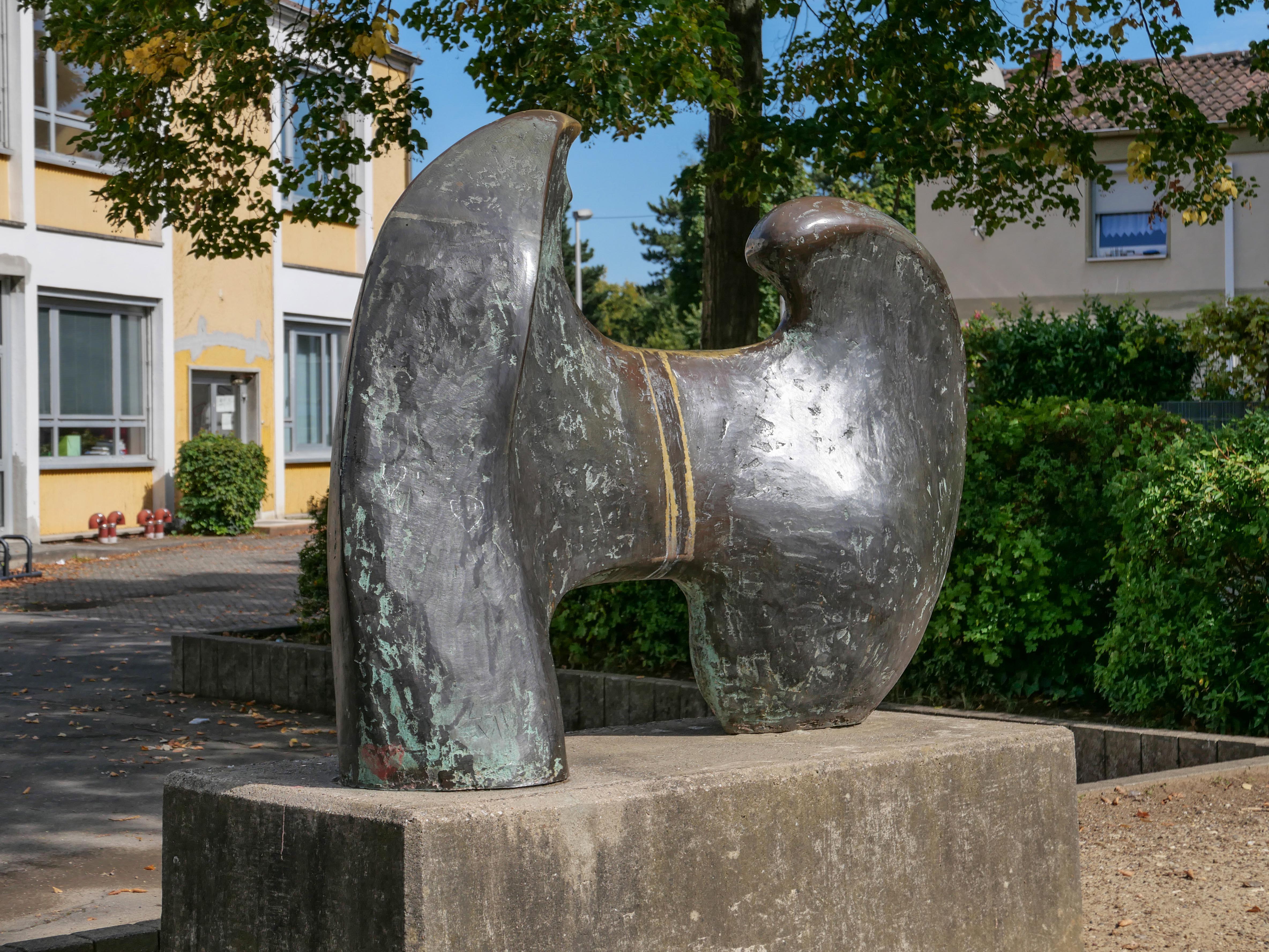 Spannung entsteht durch Gegenüberstellung zweier formal unterschiedlich gestalteter Elemente: Einem weichen abgerundeten kleineren Teil in Form eines Ovals steht ein größeres gegenüber, bei dem spitze, kantige Formen dominieren. Wie ein Horn stößt eine Spitze in Richtung des Pendants. Ausgleich schafft ein drittes Element, welches beide verbindet, wobei die Übergänge fließend sind. Dieses Werk lässt noch den Ursprung von Tierdarstellungen des Künstlers - Stier, Wisent oder Büffel - erkennen, ist aber schon in hohem Grad abstrahiert. Statt anatomischer Merkmale wie Hörner, Maul oder Muskulatur bestimmt eine schwungvolle Bewegung die Bronze, die Stärke und Vitalität ausstrahlt.«